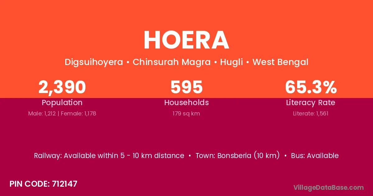 According to Census 2011 information, the village code of Hoera village is 712147.
