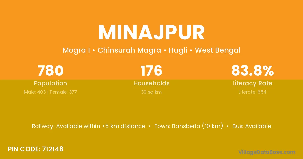 Bansberia (10 km) is the nearest town to Minajpur village for major economic activities and is located approximately 10 km away.