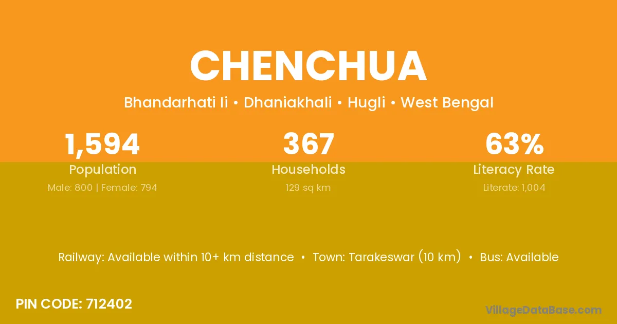 Tarakeswar (10 km) is the nearest town to Chenchua village for major economic activities and is located approximately 10 km away.