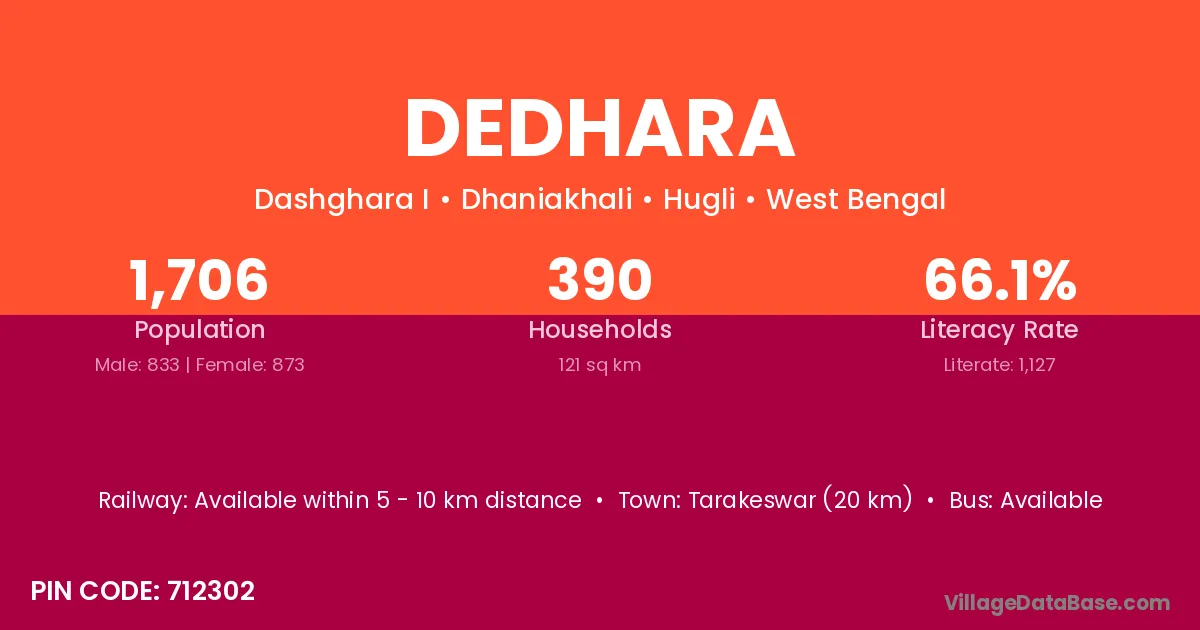 Tarakeswar (20 km) is the nearest town to Dedhara village for major economic activities and is located approximately 20 km away.