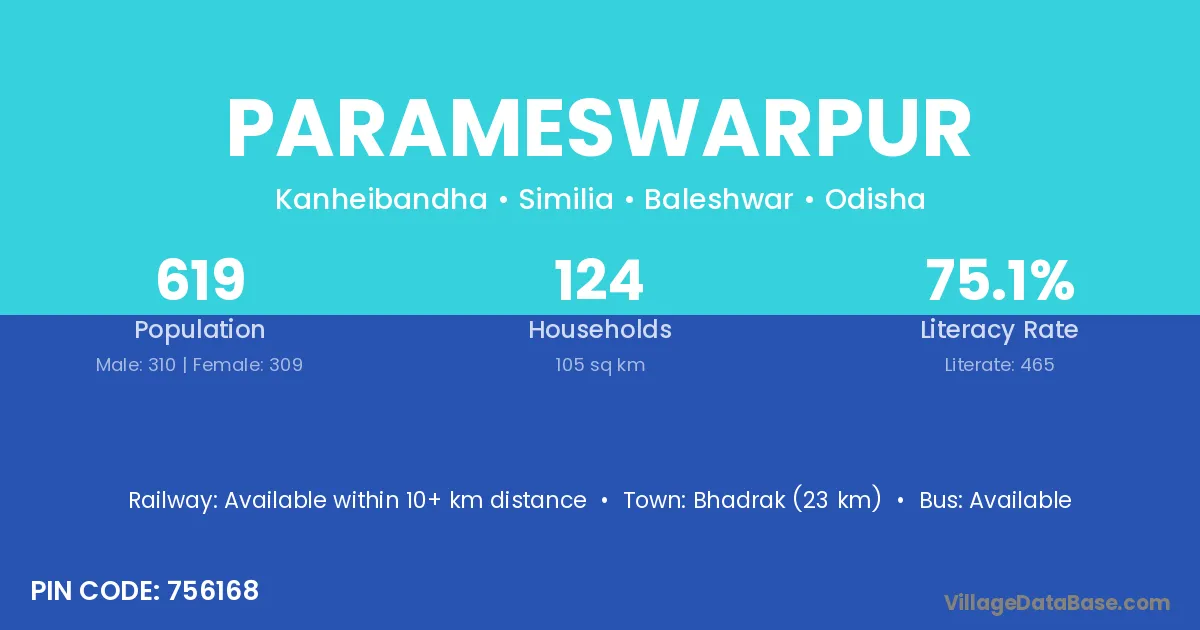 Tarakeswar (25 km) is the nearest town to Parameswarpur village for major economic activities and is located approximately 25 km away.