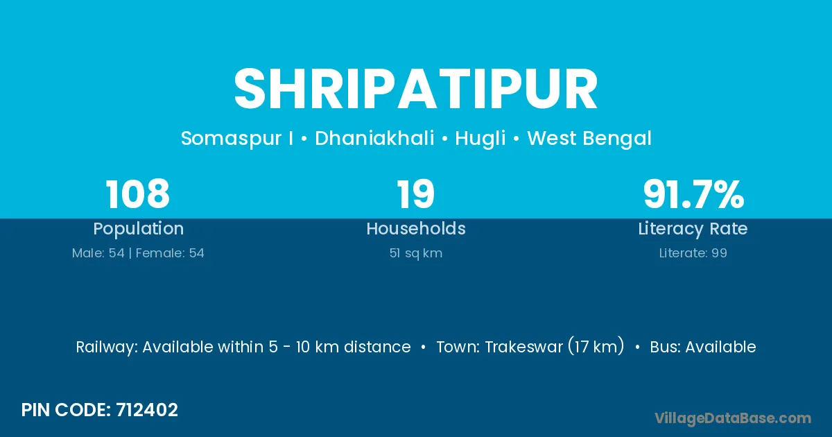 Trakeswar (17 km) is the nearest town to Shripatipur village for major economic activities and is located approximately 17 km away.
