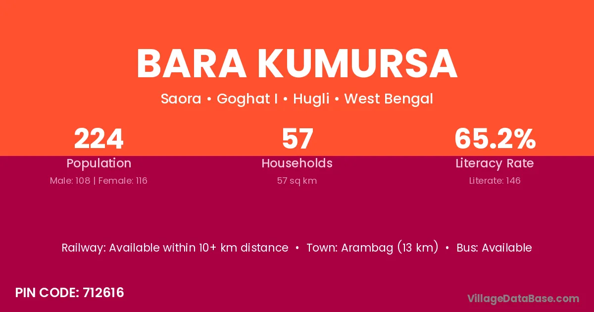 Arambag (13 km) is the nearest town to Bara Kumursa village for major economic activities and is located approximately 13 km away.