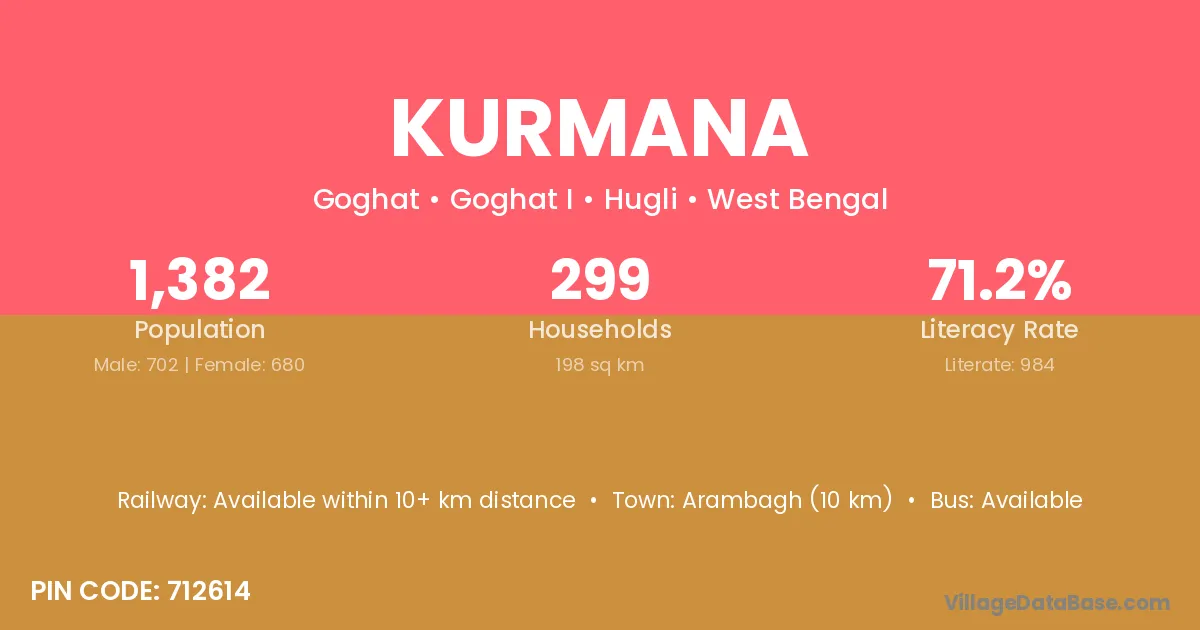 Arambagh (10 km) is the nearest town to Kurmana village for major economic activities and is located approximately 10 km away.