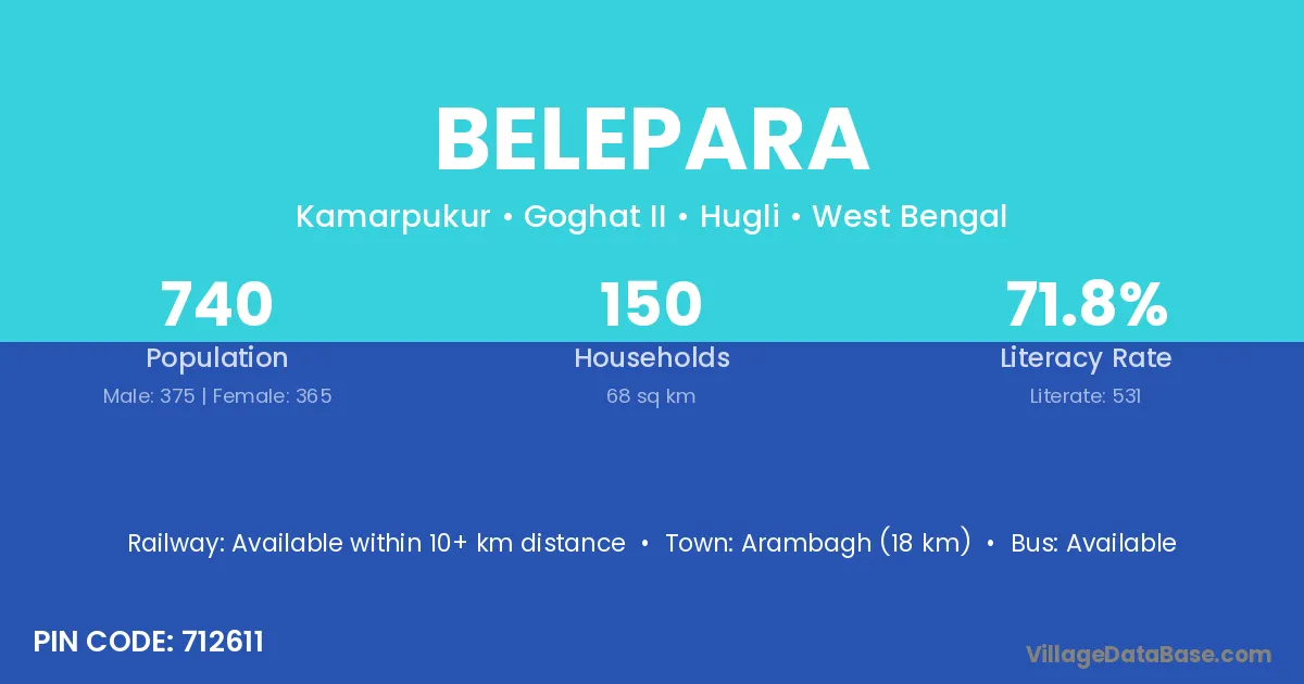 Arambagh (18 km) is the nearest town to Belepara village for major economic activities and is located approximately 18 km away.