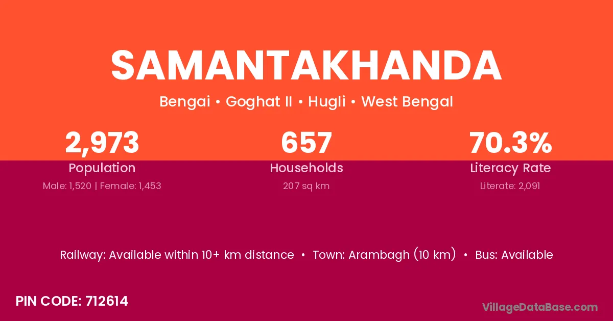 Arambagh (10 km) is the nearest town to Samantakhanda village for major economic activities and is located approximately 10 km away.