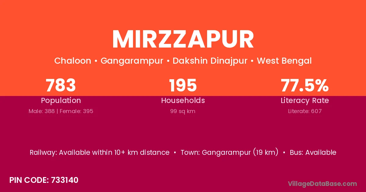 According to Census 2011 information, the village code of Mirzzapur village is 712410.
