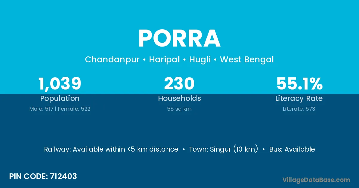 Singur (10 km) is the nearest town to Porra village for major economic activities and is located approximately 10 km away.