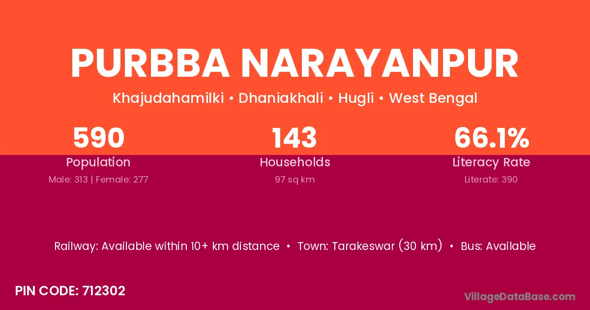 According to Census 2011 information, the village code of Purbba Narayanpur village is 712405.