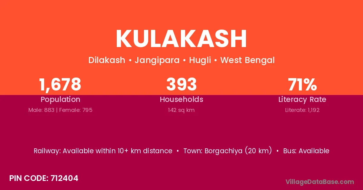 According to Census 2011 information, the village code of Kulakash village is 712404.