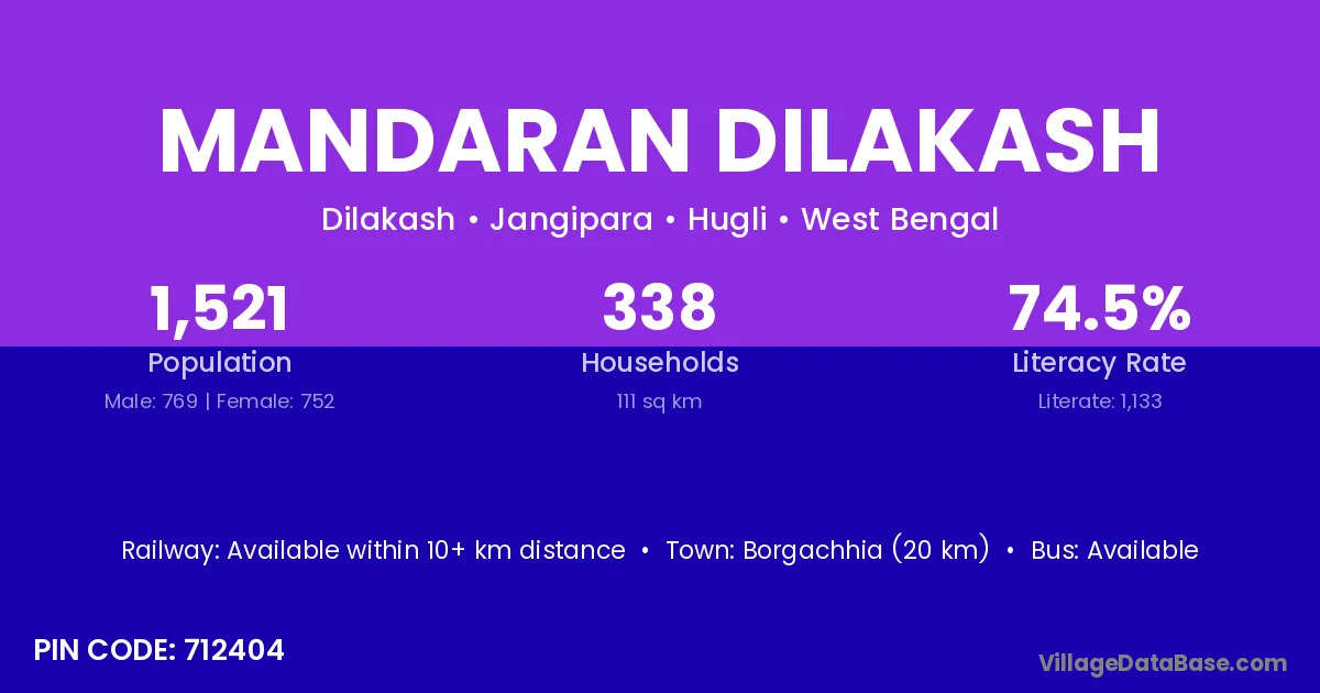 Mandaran Dilakash village is located in the Jangipara Subdivision of the Hugli district in West Bengal .