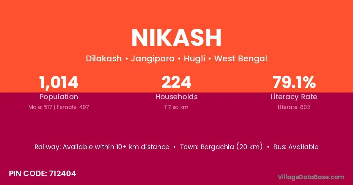 According to Census 2011 information, the village code of Nikash village is 712404.
