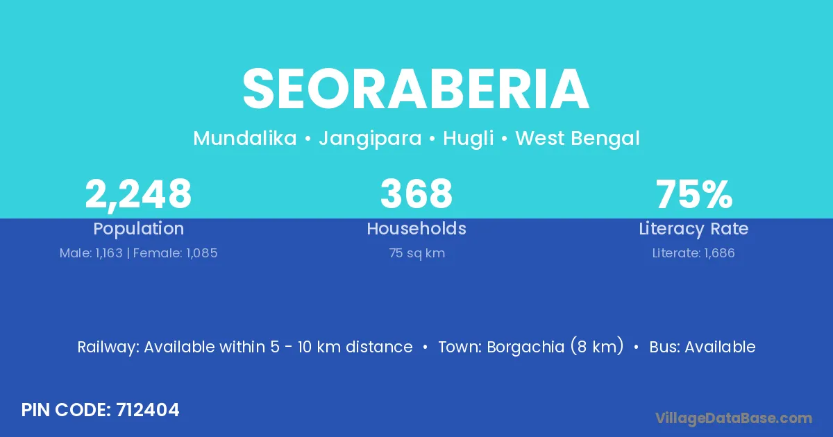 According to Census 2011 information, the village code of Seoraberia village is 712404.