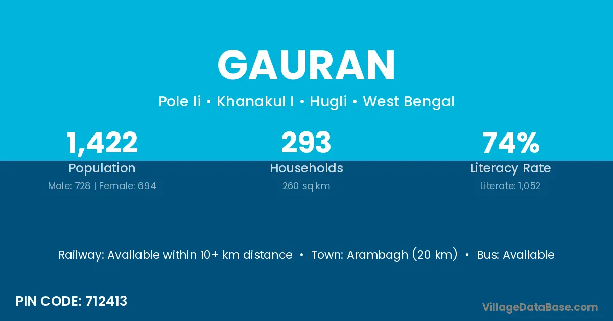 Arambagh (20 km) is the nearest town to Gauran village for major economic activities and is located approximately 20 km away.