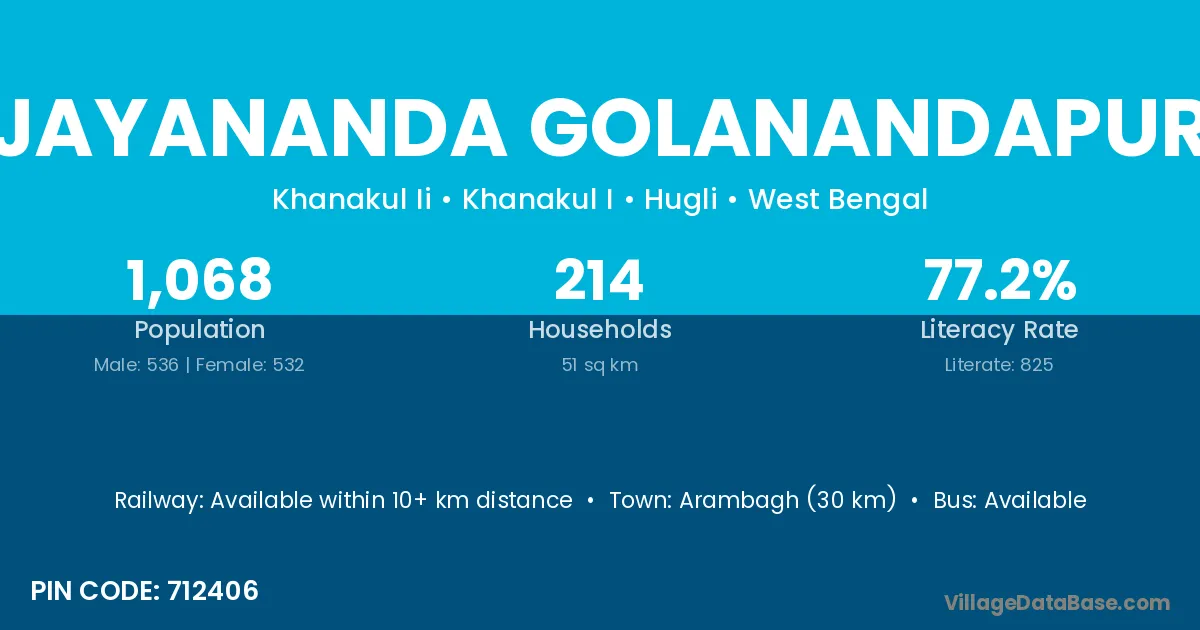 Arambagh (30 km) is the nearest town to Jayananda Golanandapur village for major economic activities and is located approximately 30 km away.