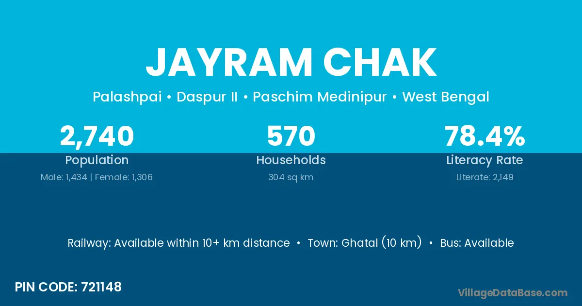 Arambagh (30 km) is the nearest town to Jayram Chak village for major economic activities and is located approximately 30 km away.
