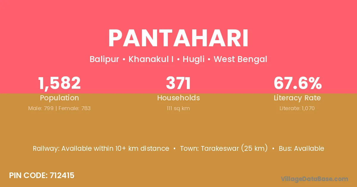 Tarakeswar (25 km) is the nearest town to Pantahari village for major economic activities and is located approximately 25 km away.