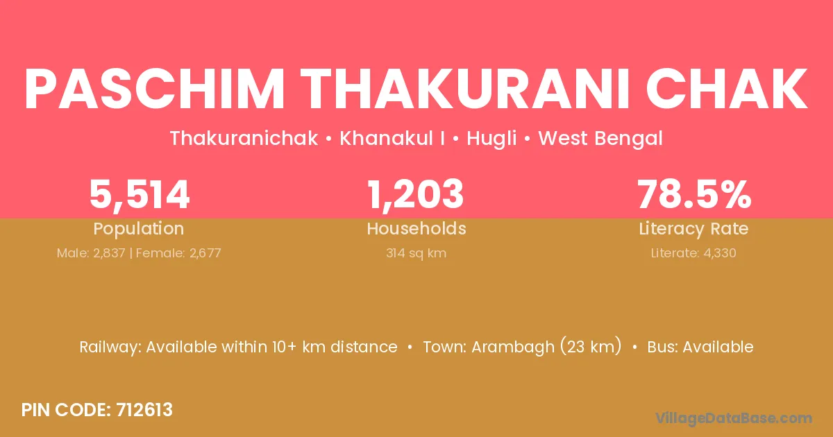 Arambagh (23 km) is the nearest town to Paschim Thakurani Chak village for major economic activities and is located approximately 23 km away.