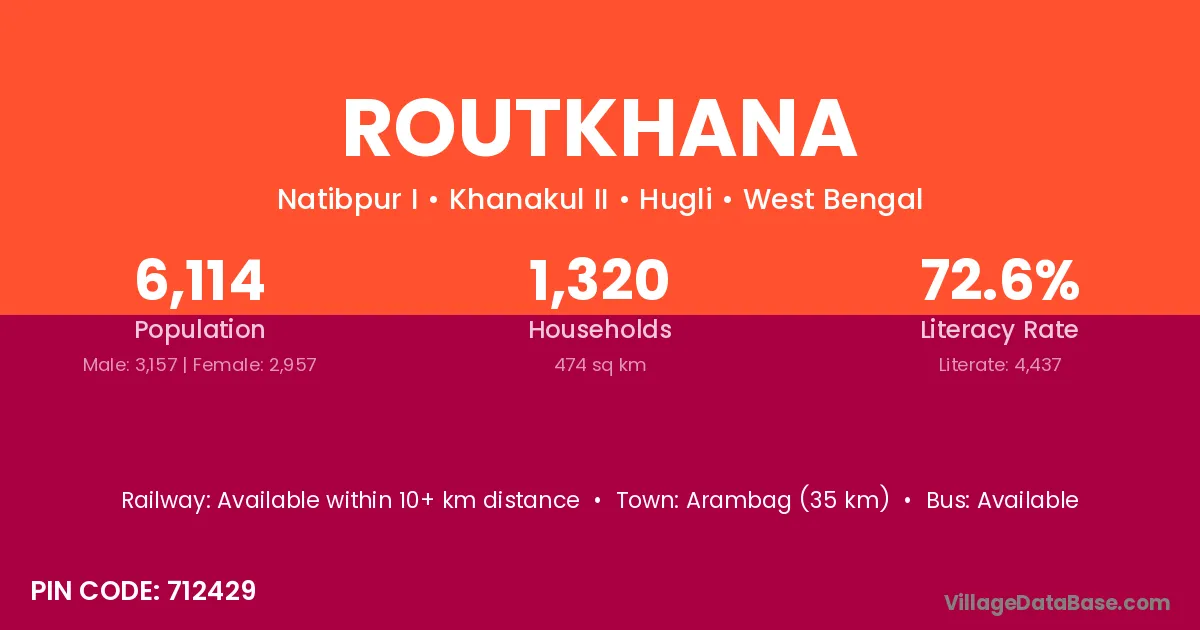 Arambag (35 km) is the nearest town to Routkhana village for major economic activities and is located approximately 35 km away.