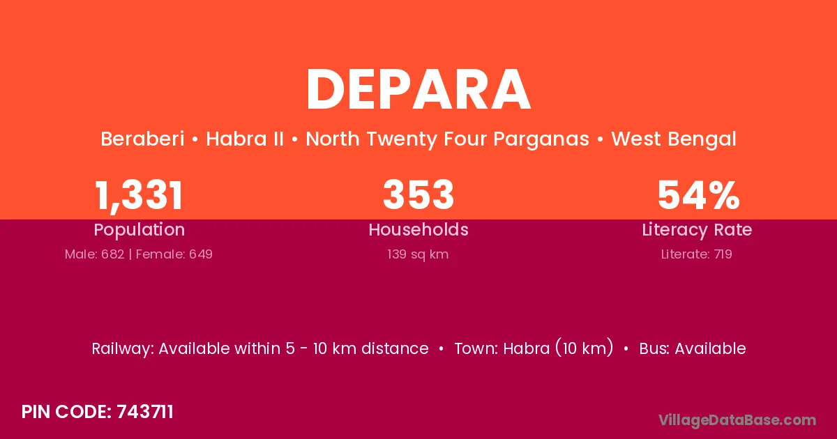 Bansberia (3 km) is the nearest town to Depara village for major economic activities and is located approximately 3 km away.