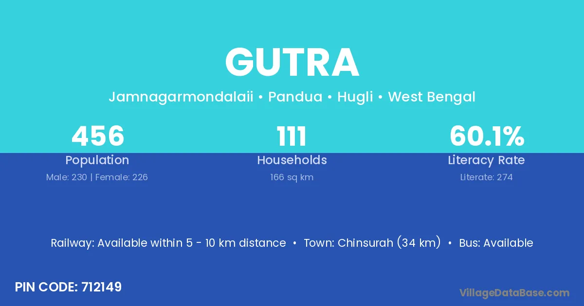Chinsurah (34 km) is the nearest town to Gutra village for major economic activities and is located approximately 34 km away.