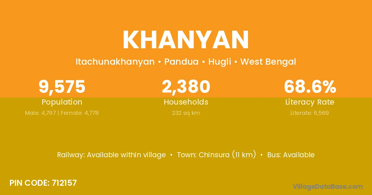 Chinsura (11 km) is the nearest town to Khanyan village for major economic activities and is located approximately 11 km away.