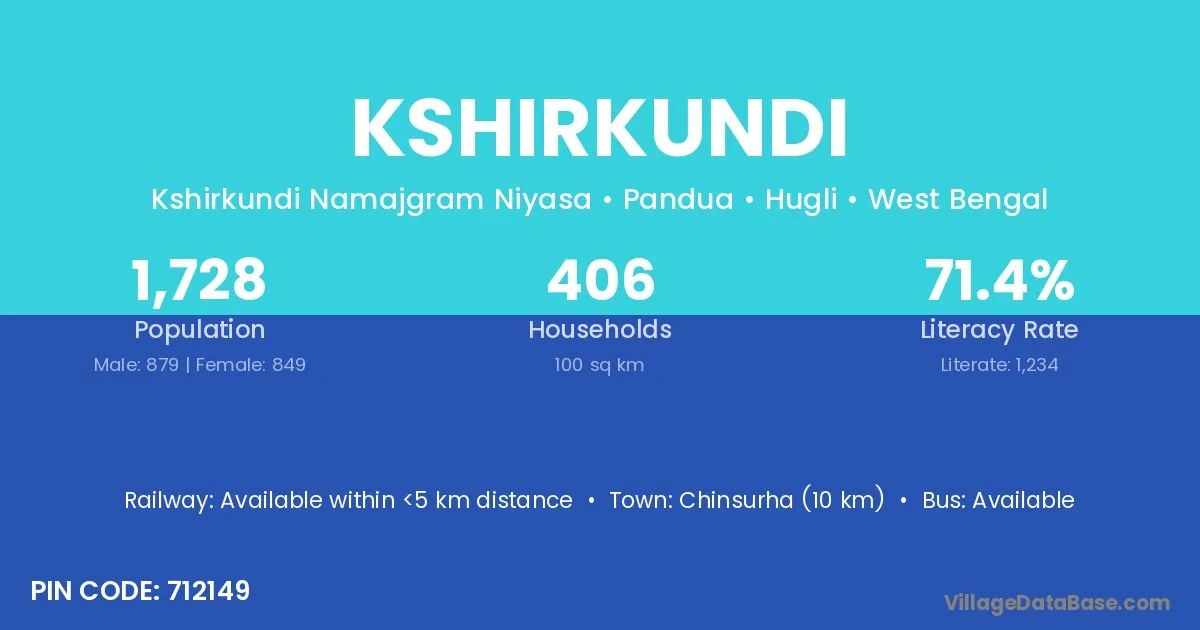 According to Census 2011 information, the village code of Kshirkundi village is 712149.