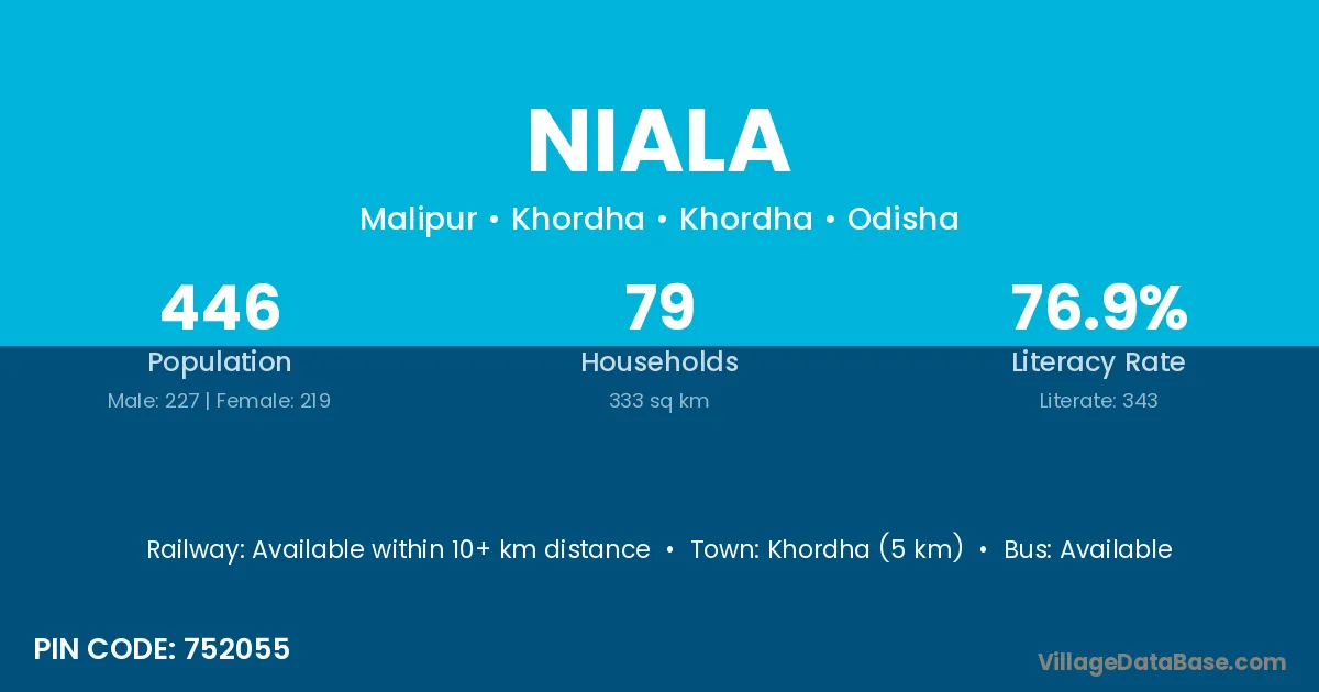 Bansberia (11 km) is the nearest town to Niala village for major economic activities and is located approximately 11 km away.