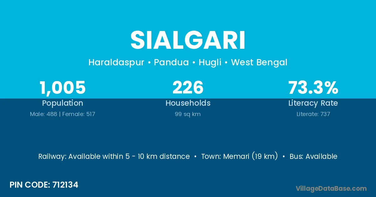 Memari (19 km) is the nearest town to Sialgari village for major economic activities and is located approximately 19 km away.