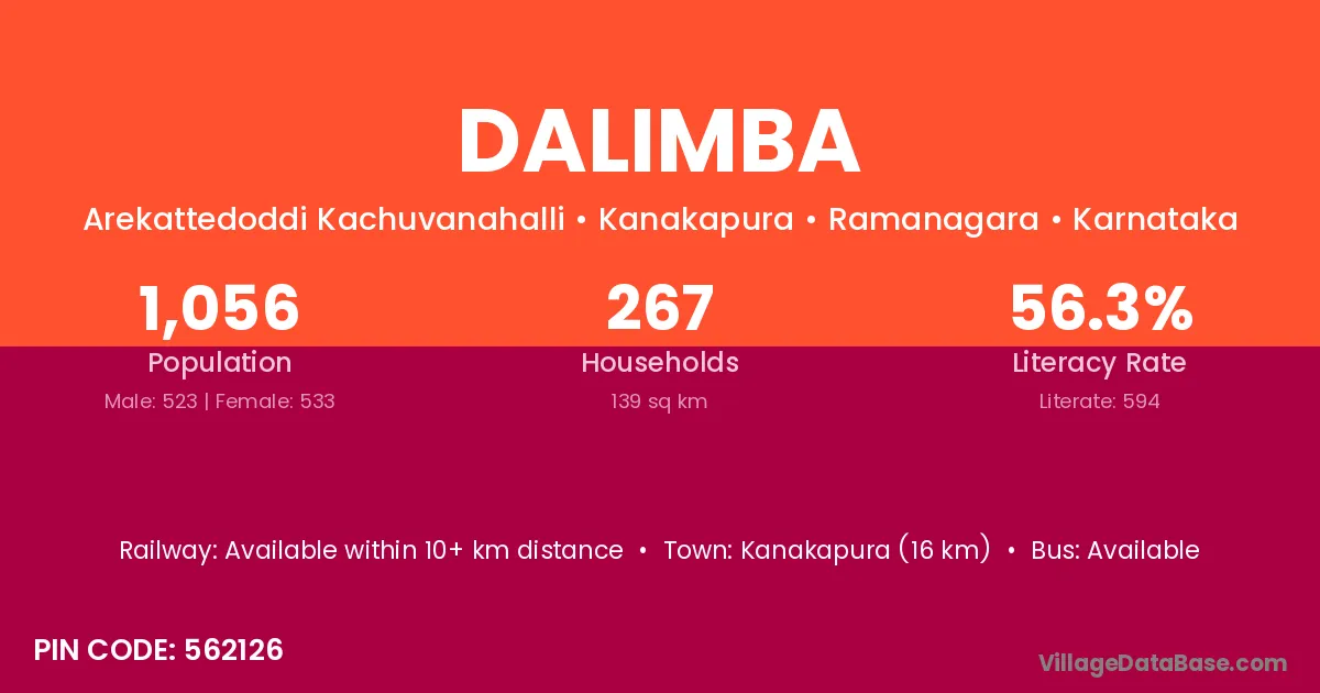 Dalimba village has a total population of 2,442 people, of which 1,246 are males and 1,196 are females.