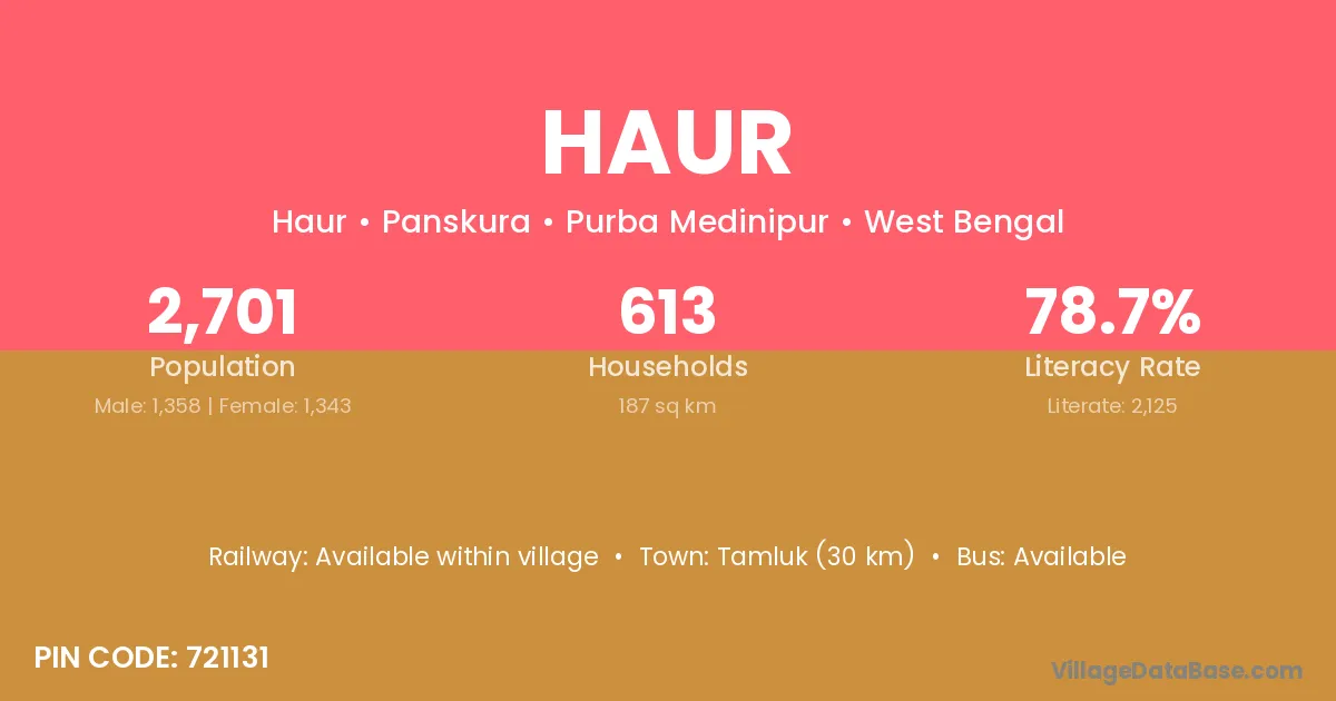 Chunchura (35 km) is the nearest town to Haur village for major economic activities and is located approximately 35 km away.