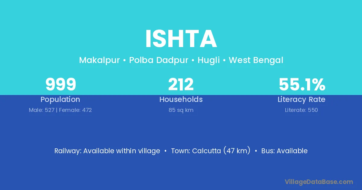 Calcutta (47 km) is the nearest town to Ishta village for major economic activities and is located approximately 47 km away.