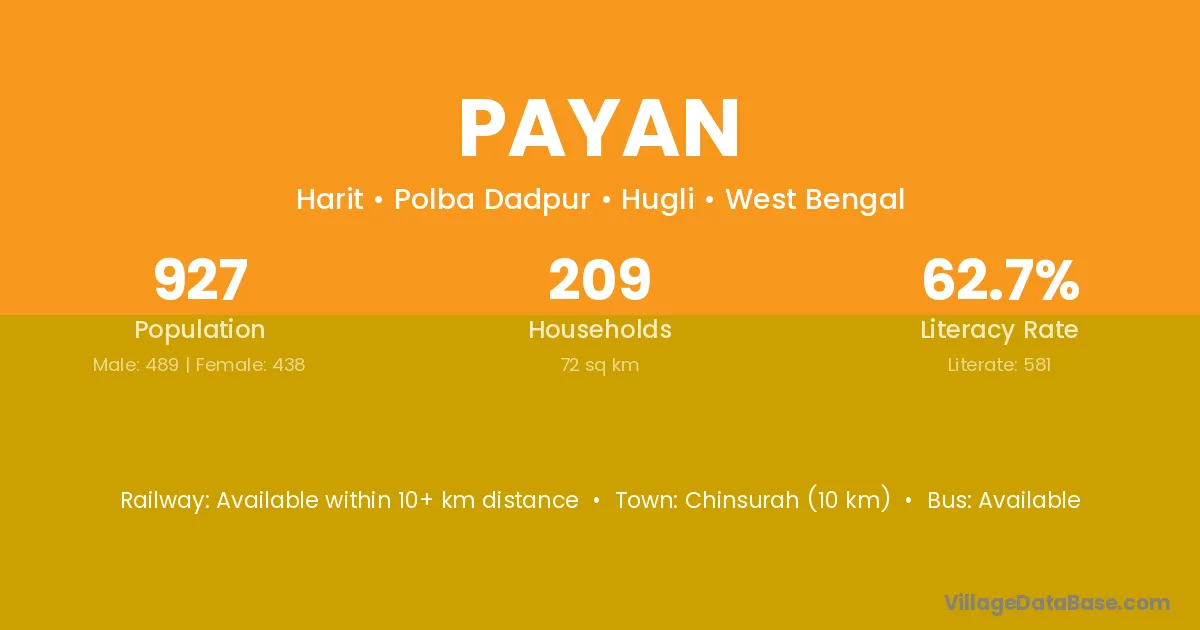 Chinsurah (10 km) is the nearest town to Payan village for major economic activities and is located approximately 10 km away.
