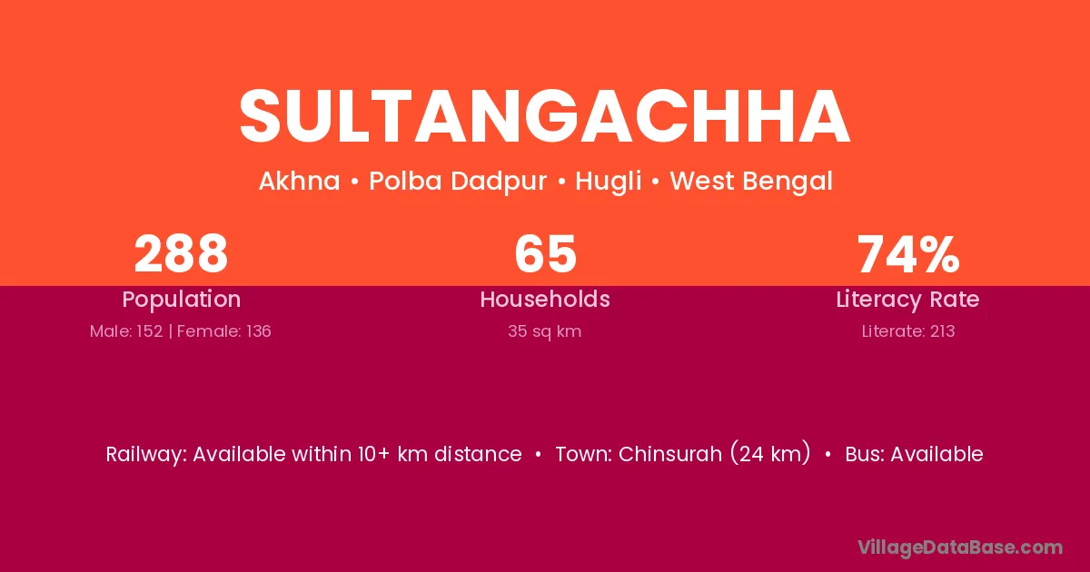 Chinsurah (24 km) is the nearest town to Sultangachha village for major economic activities and is located approximately 24 km away.