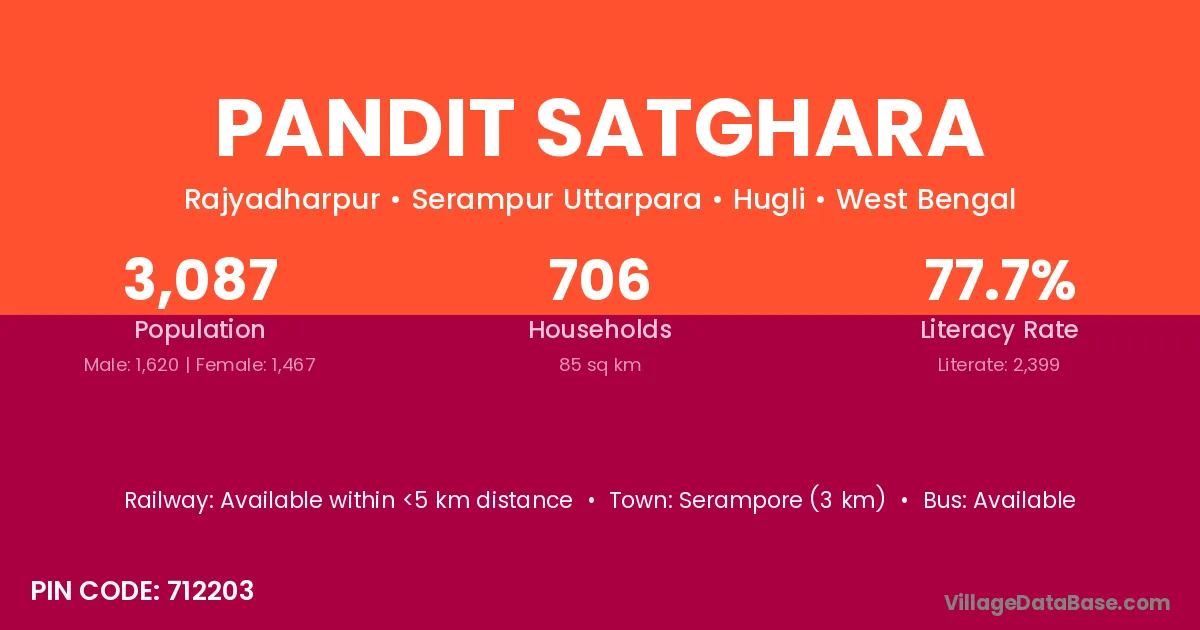 Serampore (3 km) is the nearest town to Pandit Satghara village for major economic activities and is located approximately 3 km away.