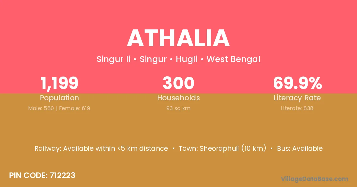 Sheoraphuli (10 km) is the nearest town to Athalia village for major economic activities and is located approximately 10 km away.