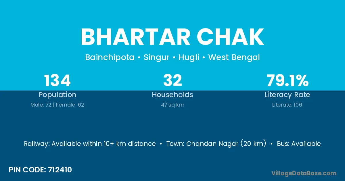 Chandan Nagar (20 km) is the nearest town to Bhartar Chak village for major economic activities and is located approximately 20 km away.