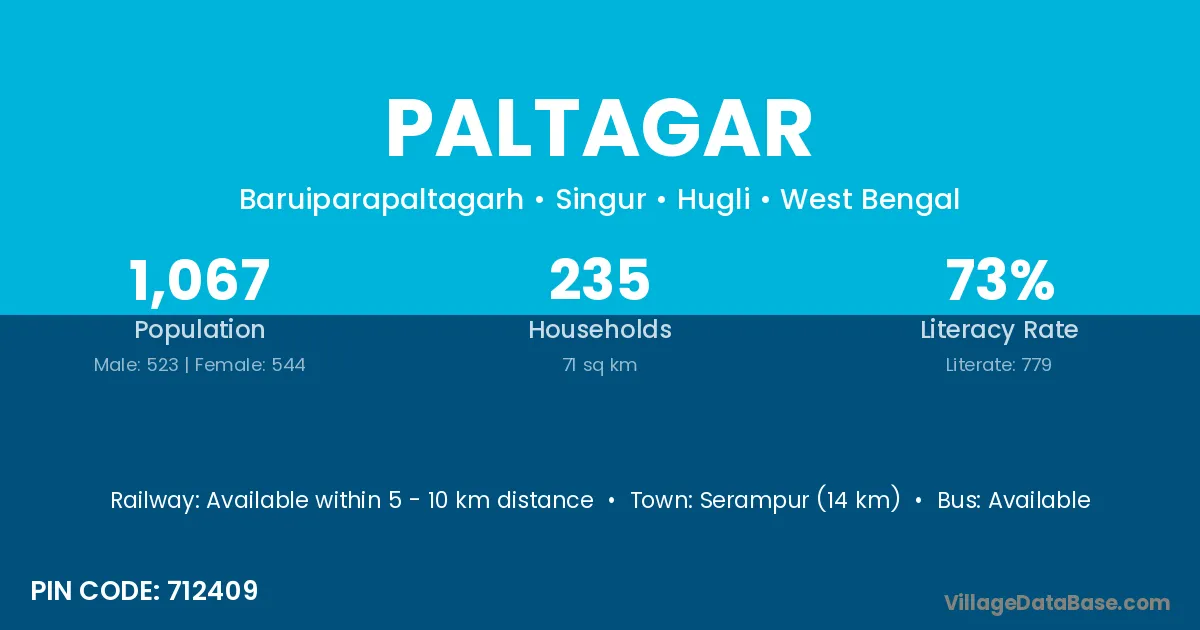 Serampur (14 km) is the nearest town to Paltagar village for major economic activities and is located approximately 14 km away.