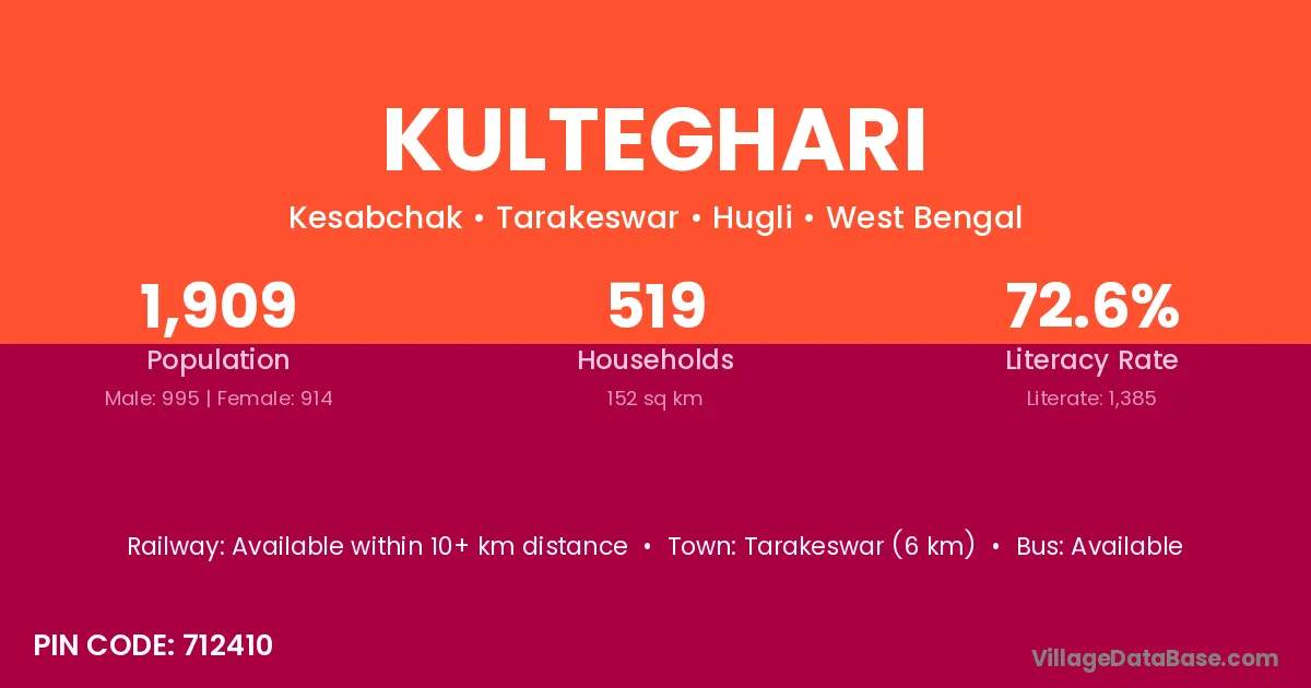 Tarakeswar (6 km) is the nearest town to Kulteghari village for major economic activities and is located approximately 6 km away.