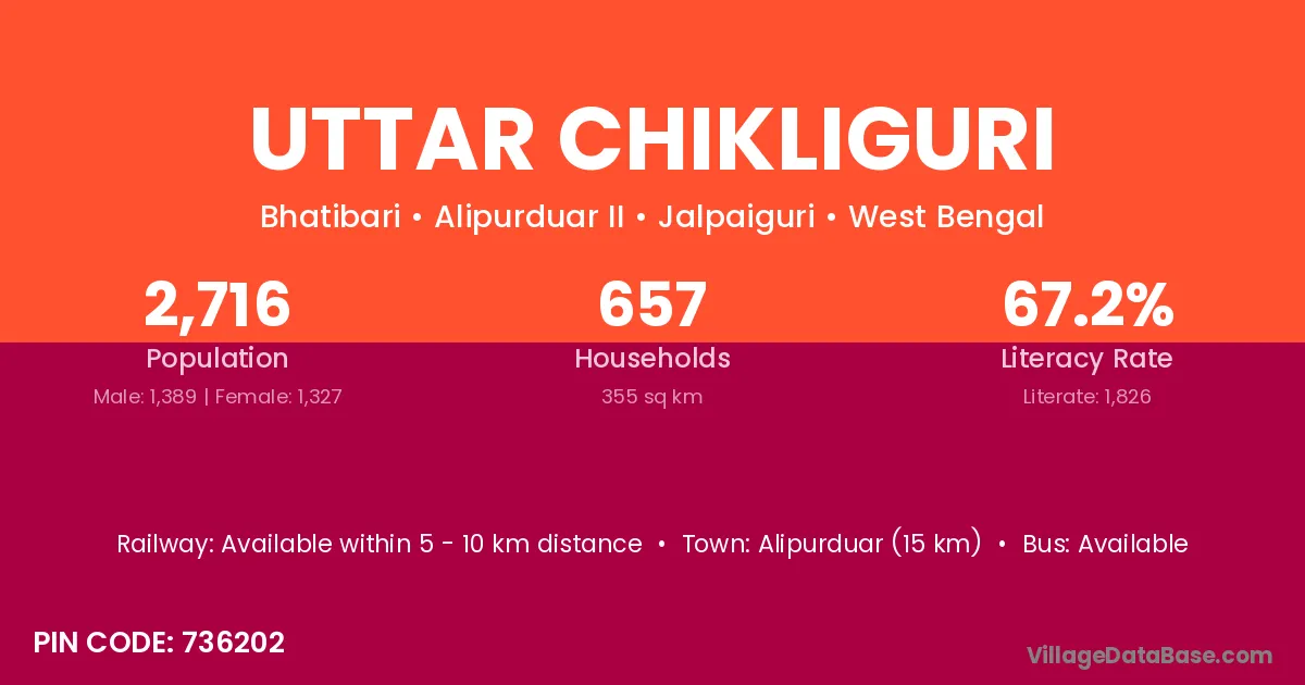 According to Census 2011 information, the village code of Uttar Chikliguri village is 736202.