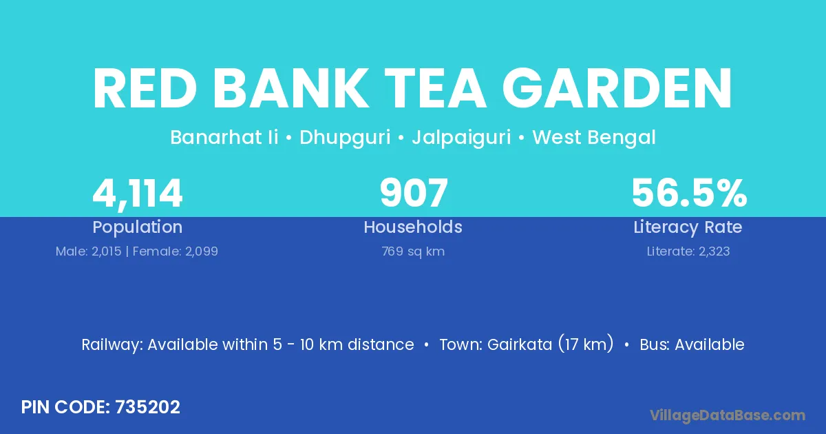 According to Census 2011 information, the village code of Red Bank Tea Garden village is 735202.