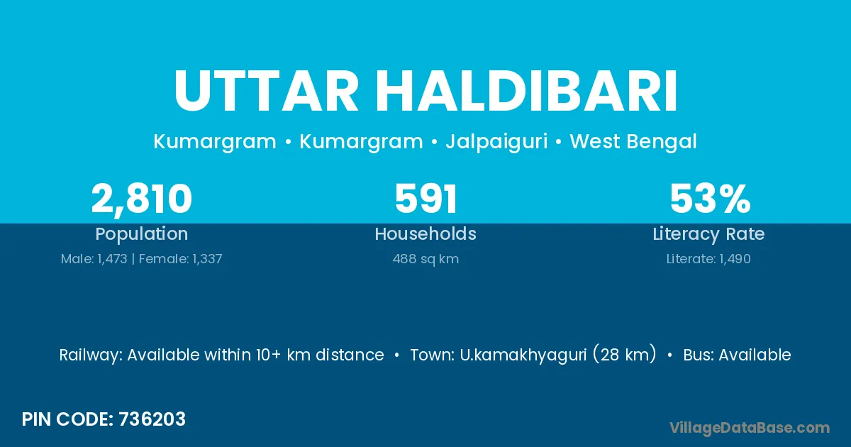 There are approximately 591 households in Uttar Haldibari village.