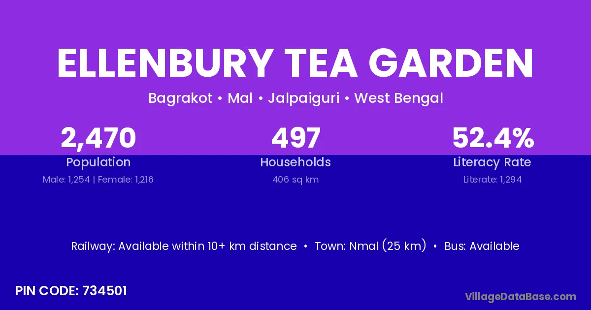 According to Census 2011 information, the village code of Ellenbury Tea Garden village is 734501.