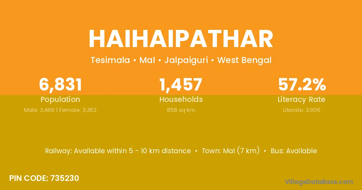 Mal (7 km) is the nearest town to Haihaipathar village for major economic activities and is located approximately 7 km away.