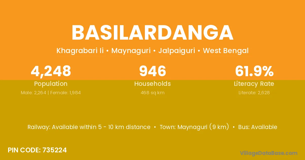 Maynaguri (9 km) is the nearest town to Basilardanga village for major economic activities and is located approximately 9 km away.