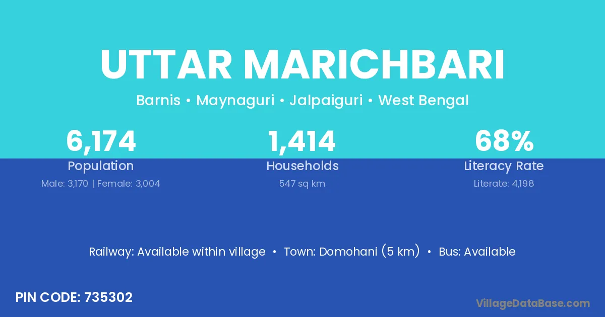 Uttar Marichbari village has a total population of 6,174 people, of which 3,170 are males and 3,004 are females.