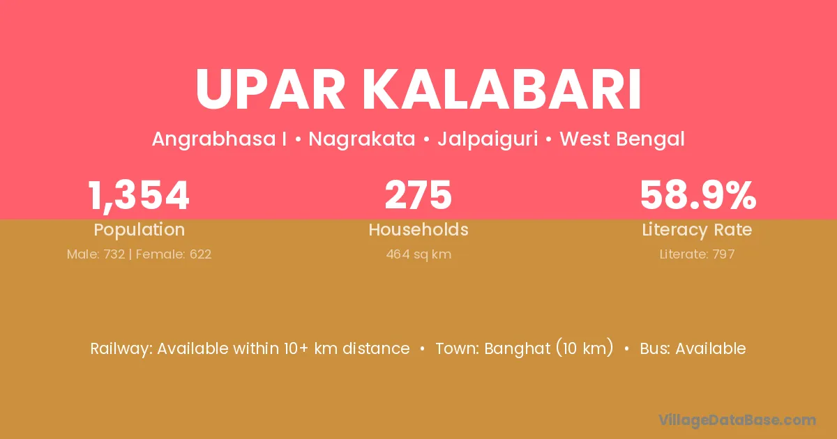 Banghat (10 km) is the nearest town to Upar Kalabari village for major economic activities and is located approximately 10 km away.