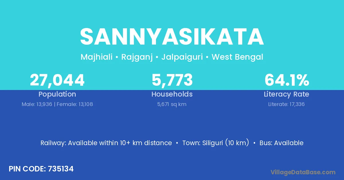 Siliguri (10 km) is the nearest town to Sannyasikata village for major economic activities and is located approximately 10 km away.