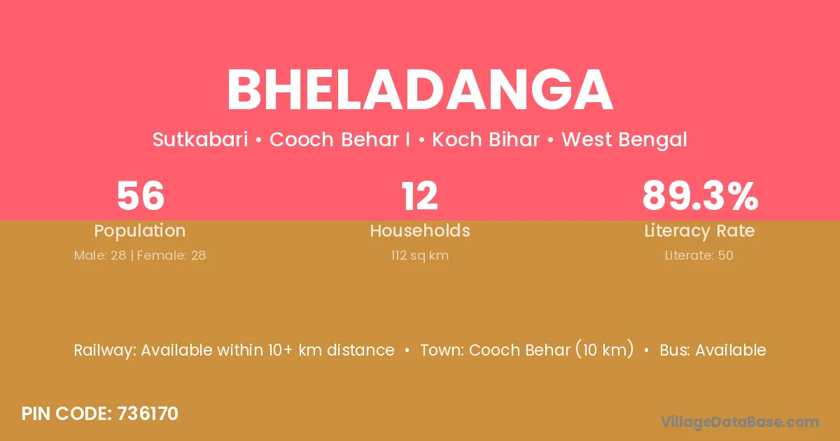 Cooch Behar (10 km) is the nearest town to Bheladanga village for major economic activities and is located approximately 10 km away.