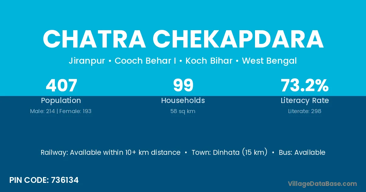 Dinhata (15 km) is the nearest town to Chatra Chekapdara village for major economic activities and is located approximately 15 km away.